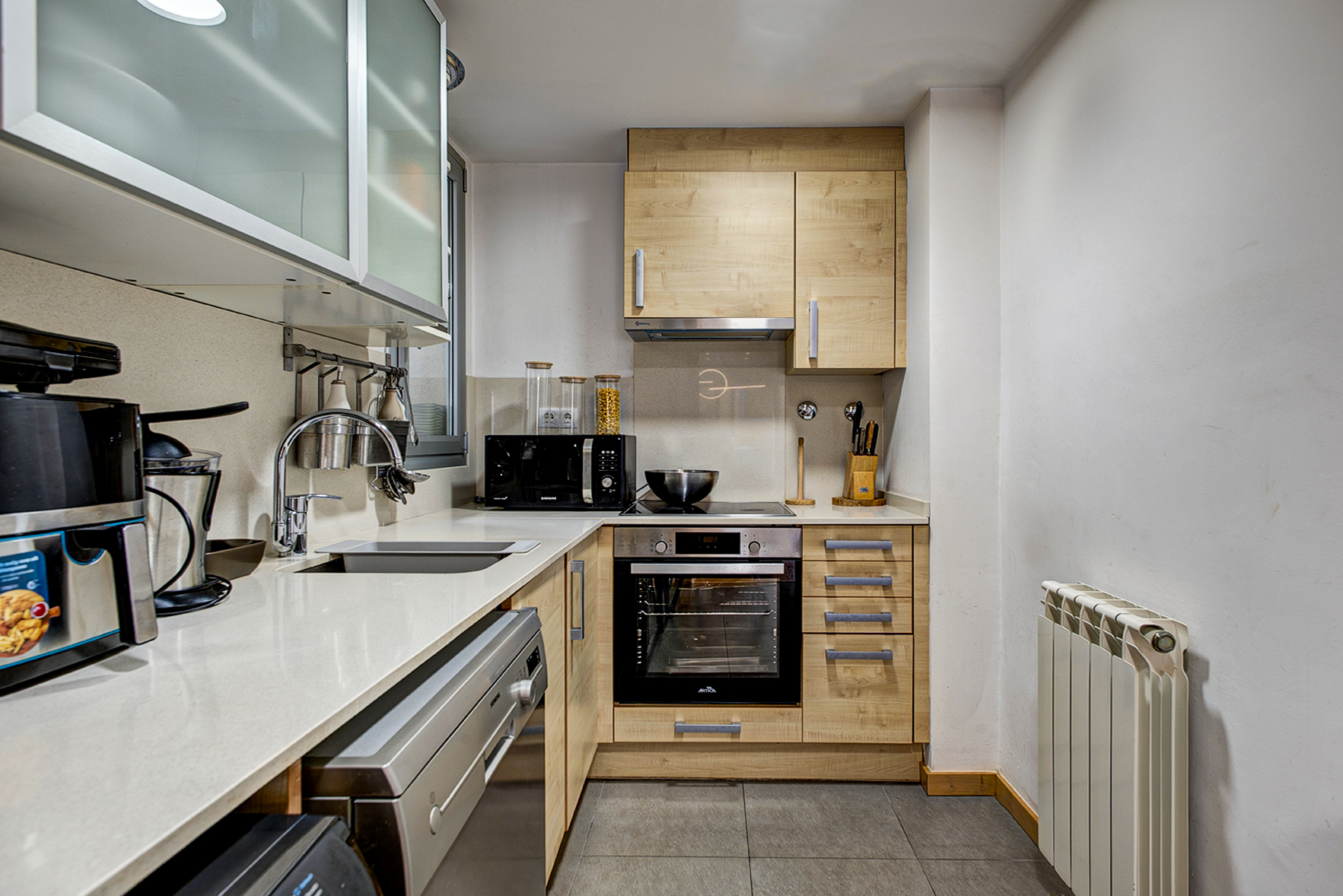 Cuina moderna i funcional, amb molt d’espai d’emmagatzematge.