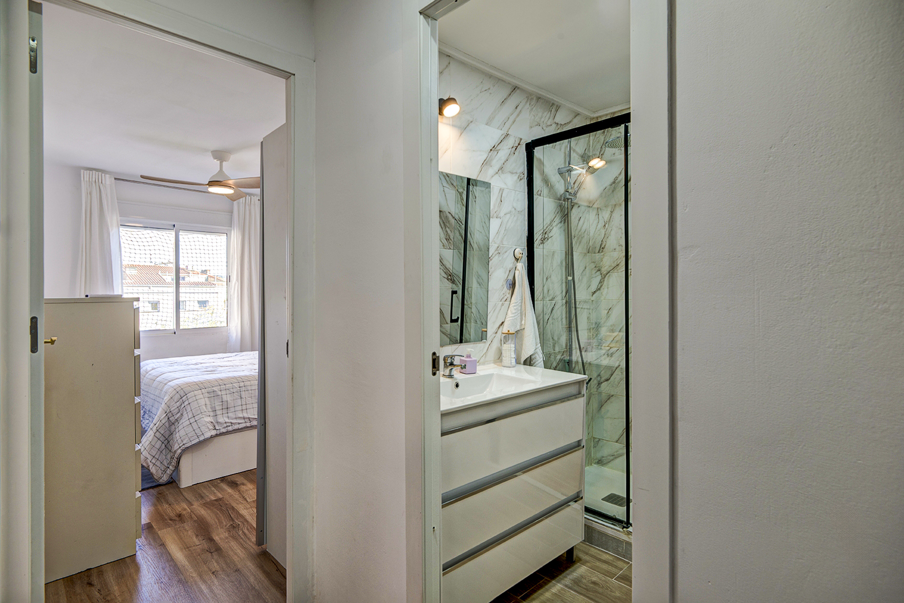 Bany reformat amb plat de dutxa, modern i pràctic
